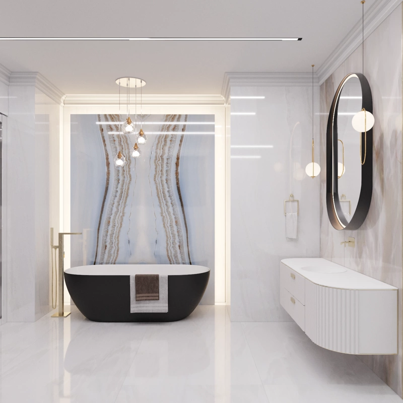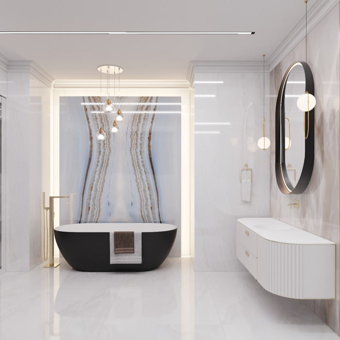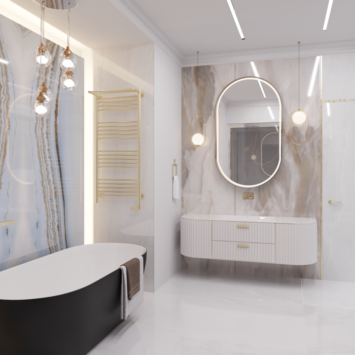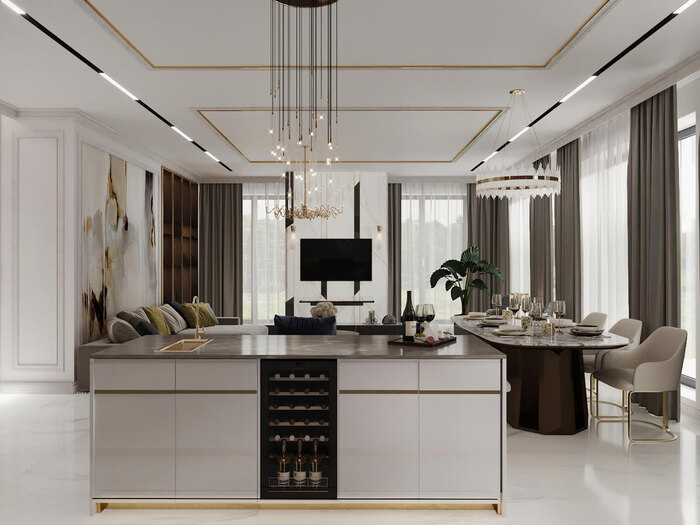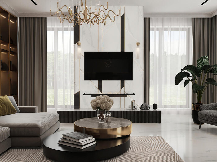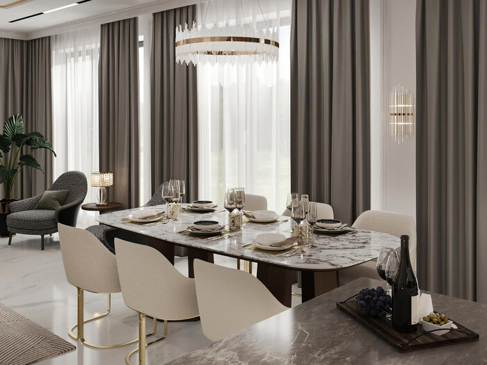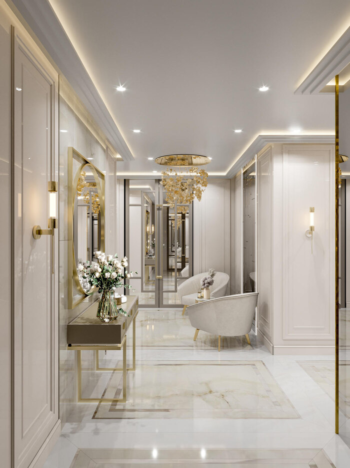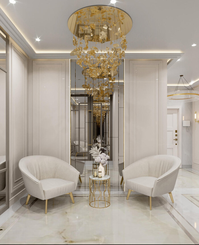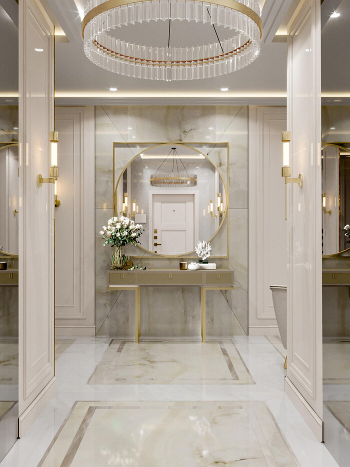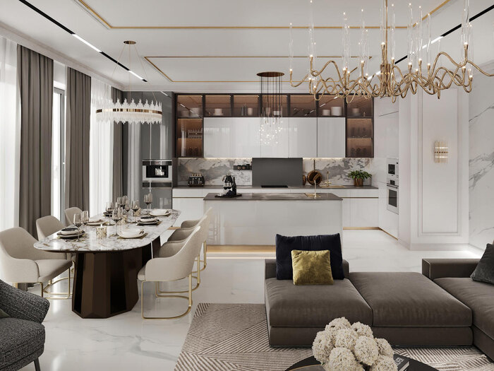 Современная классика в дизайне интерьера квартиры в ЖК "Петровский квартал на воде" — 345 м2