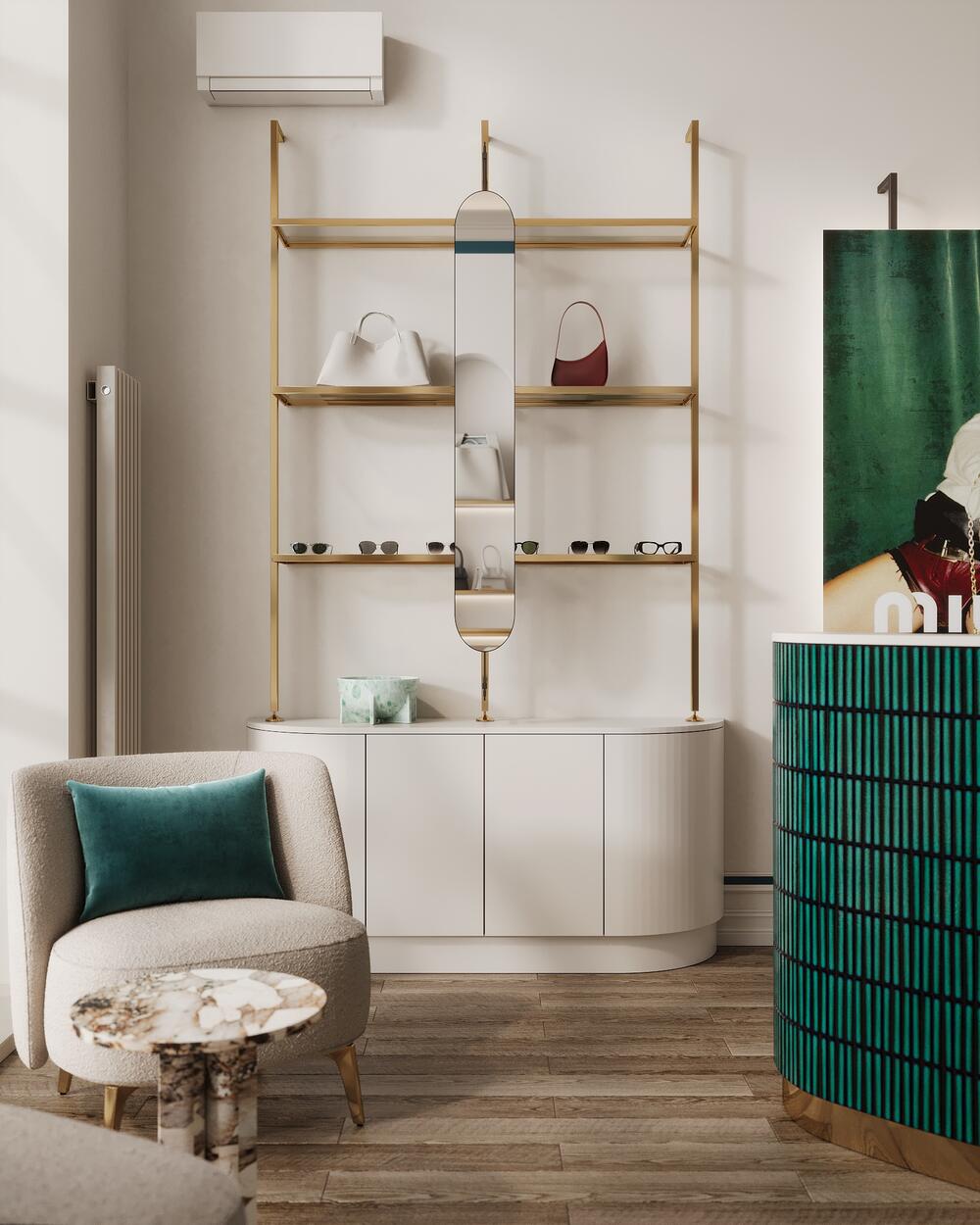 Спроектировать интерьер шоурума с акцентом на премиальность и эстетику бренда