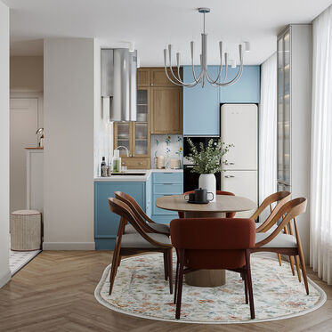 Посмотреть проектДизайн проект квартиры в современном стиле с синими и терракотовыми акцентами в ЖК "Белый остров" - 115 м2