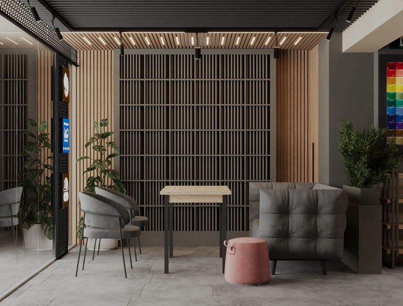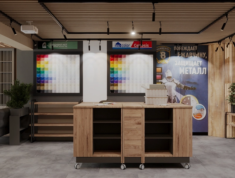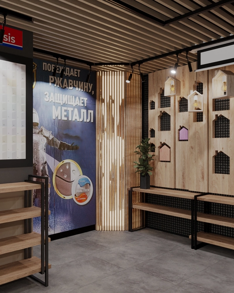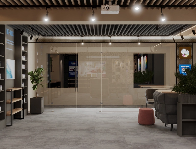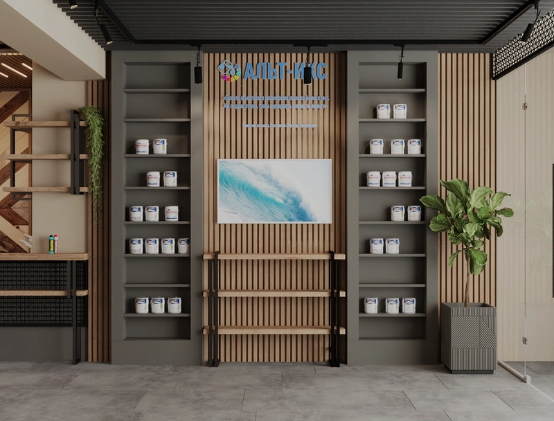 Современный шоу-рум компании по продаже лакокрасочных материалов "Альт Икс" - 70 м2