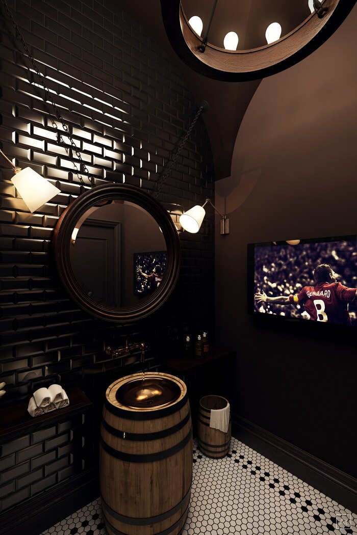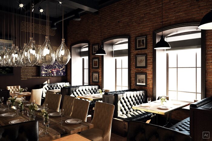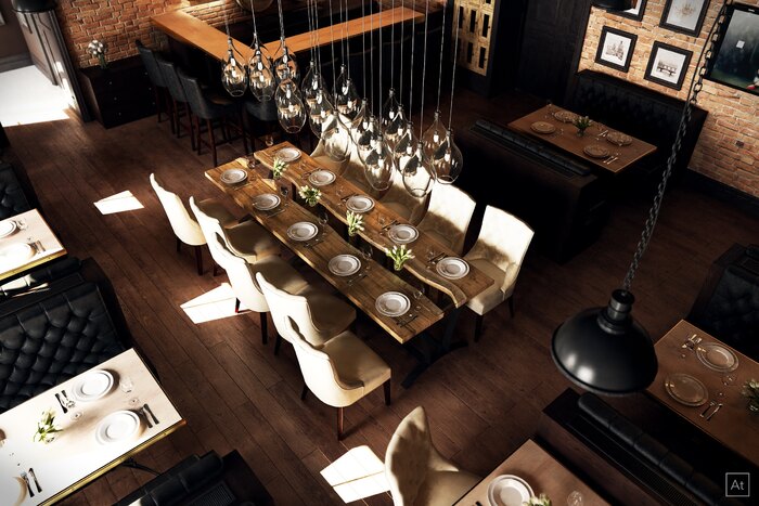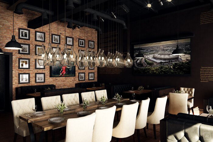 - Требовалось создать интерьер пивного бара с просмотром футбола