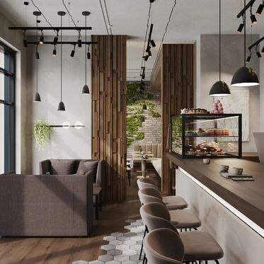 Посмотреть проектКафе в современном стиле с элементами лофта - 65 м2