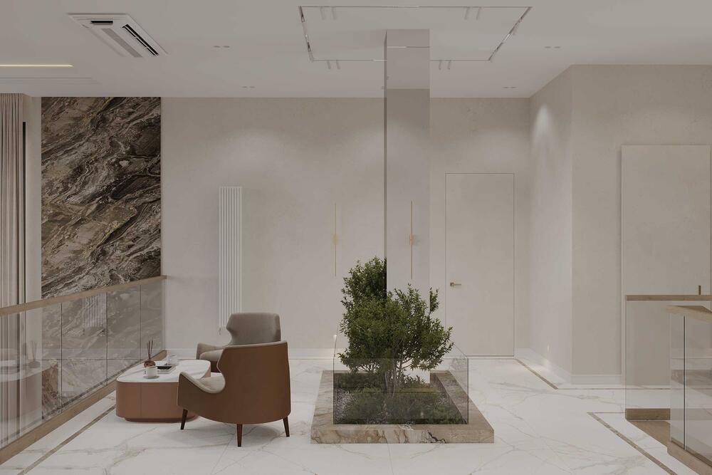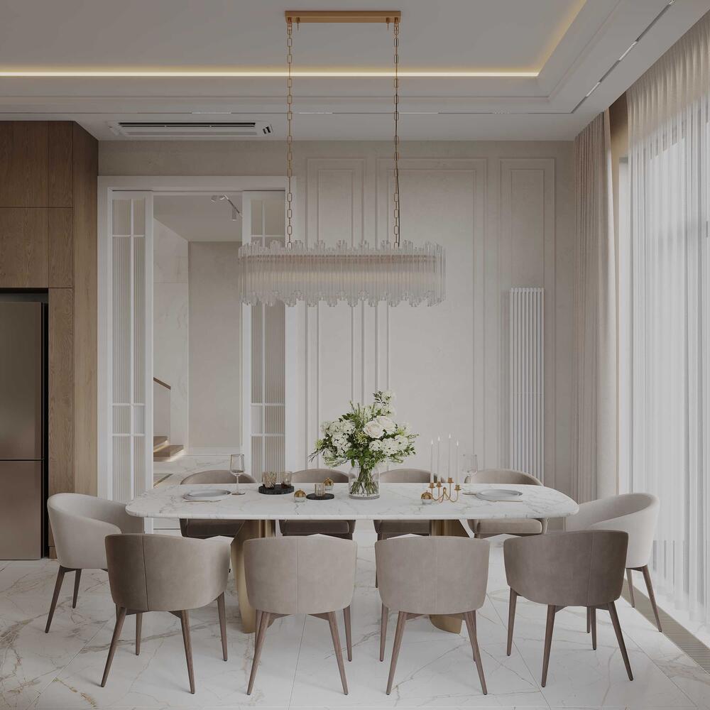 Дизайн проект загородного дома в светлых оттенках в Кирпорье - 266 м²