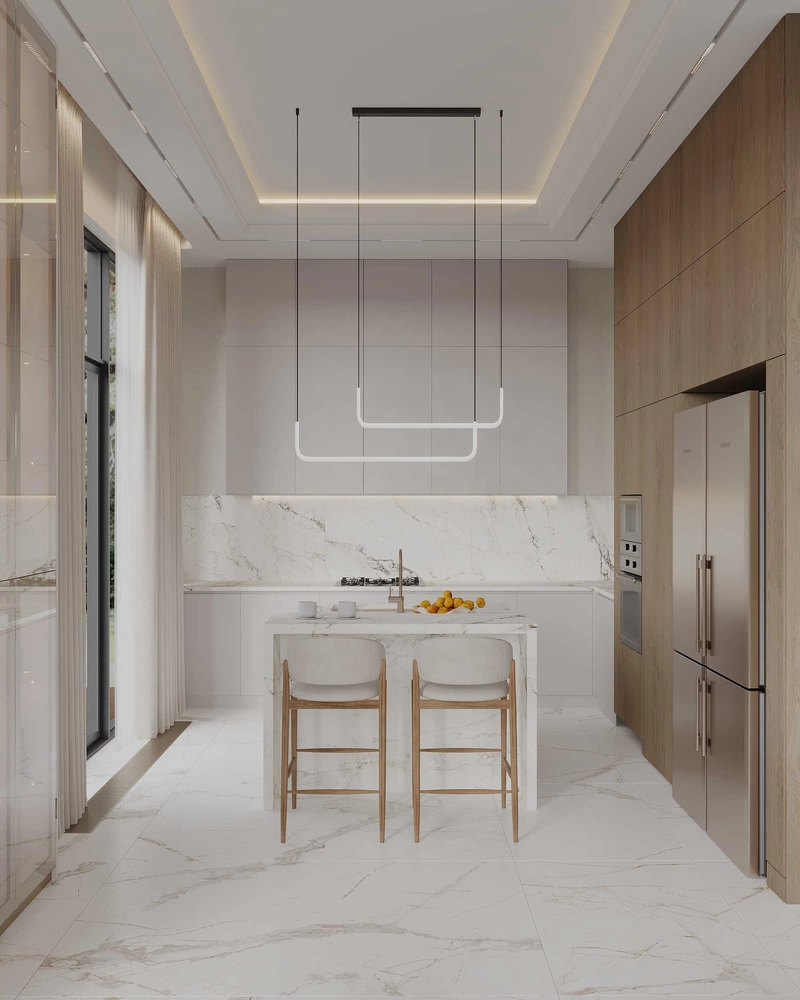 Задача кухни-столовой — быть удобной для ежедневной жизни: готовить, завтракать, проводить время всей семьёй, не превращая пространство в «рабочую зону».