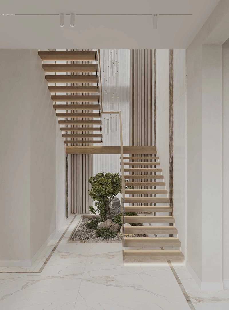 Инженерная доска — использована для отделки полов, добавляя теплый и текстурированный эффект. Этот материал долговечен и стильный, идеально подходит для активных зон.