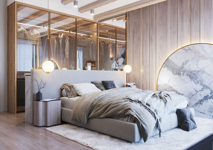 Посмотреть проектРеализованный дизайн интерьера квартиры в ЖК «NEVA HAUS» в стиле минимализм и джапанди - 203 м²