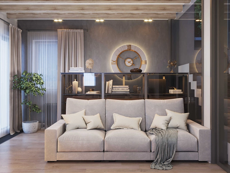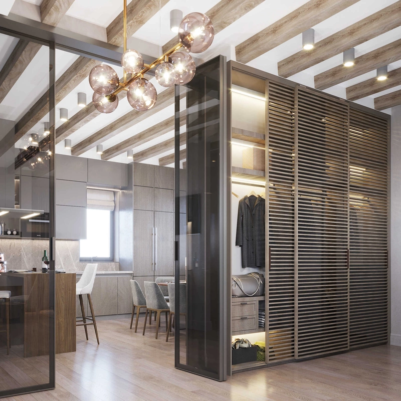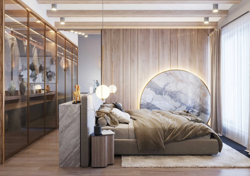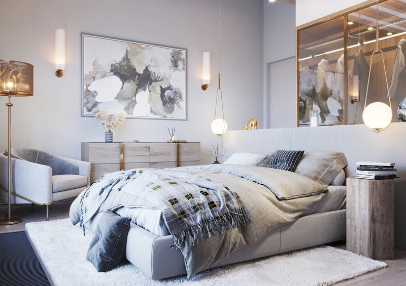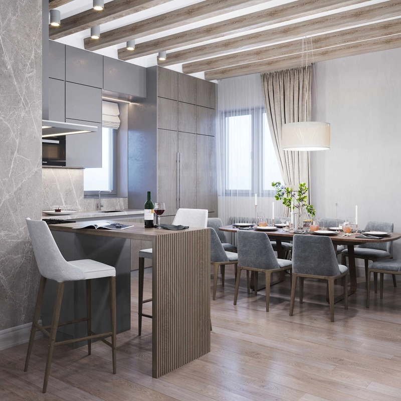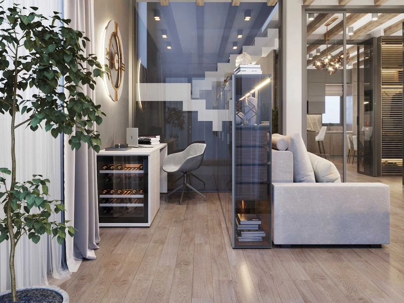 Посмотреть проектСовременный минимализм в теплых тонах в интерьере квартиры в ЖК "Наука" - 105 м2