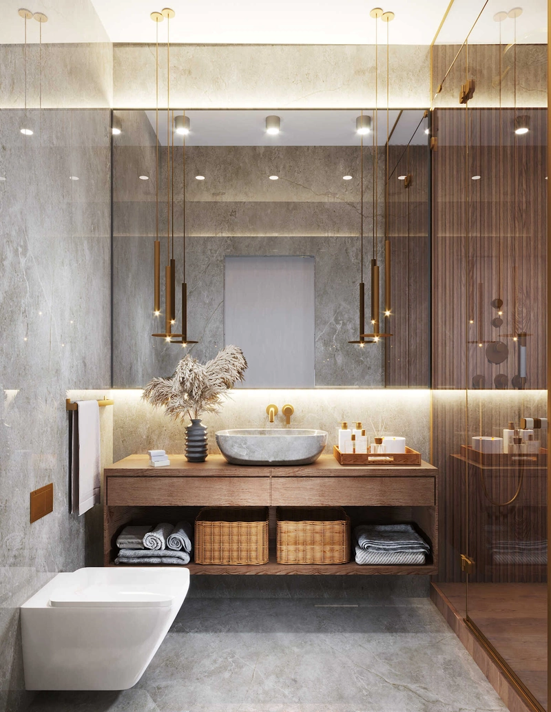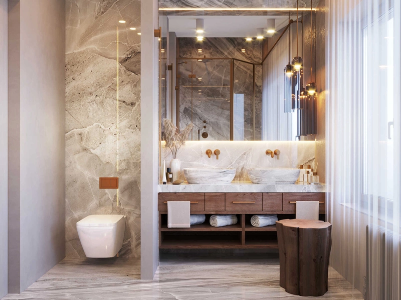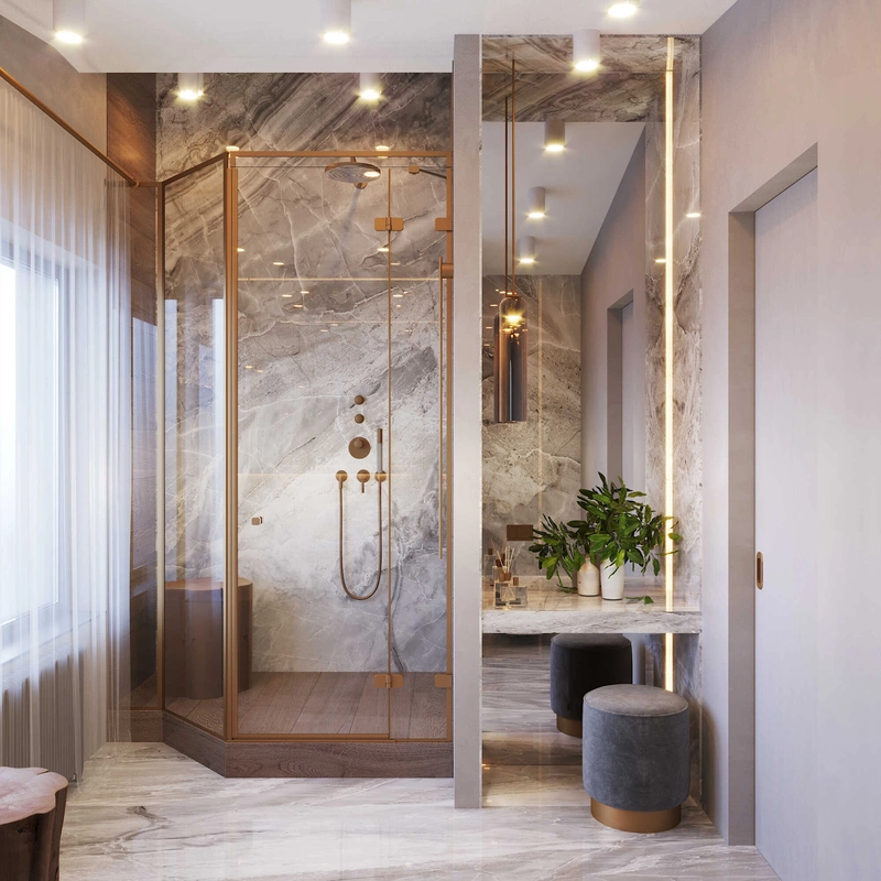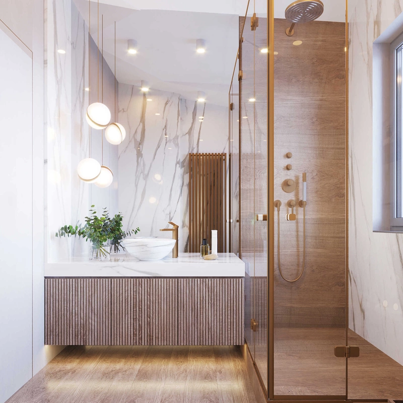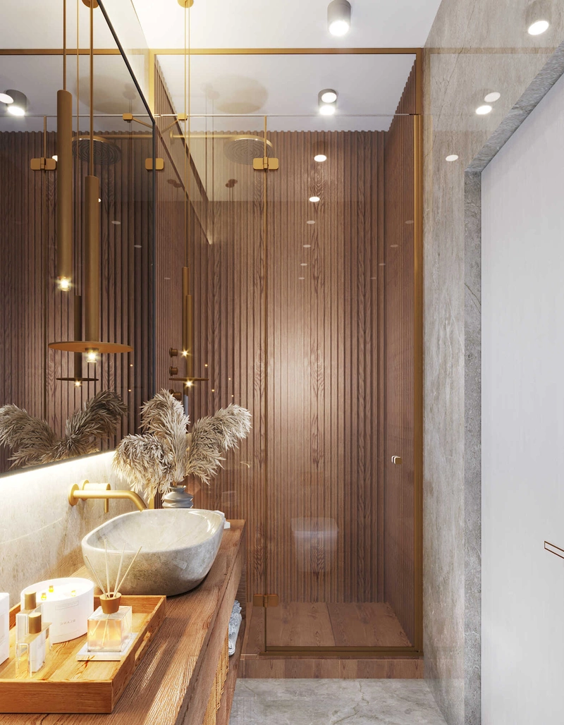 Посмотреть проектСовременный минимализм в теплых тонах в интерьере квартиры в ЖК "Наука" - 105 м2