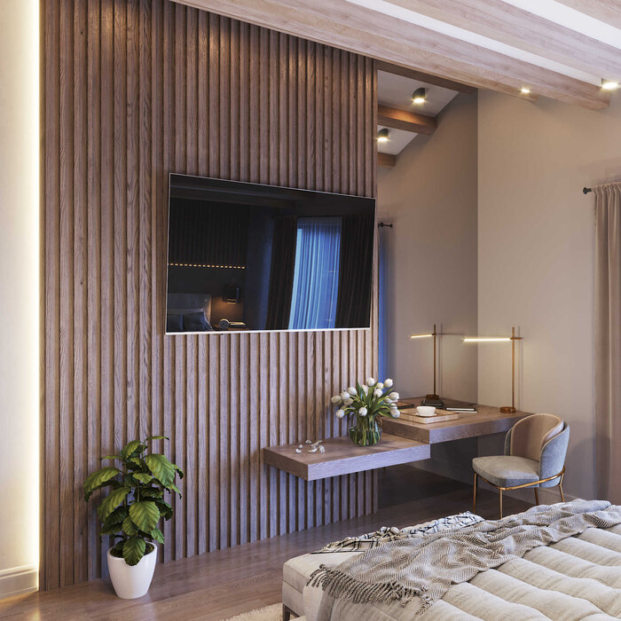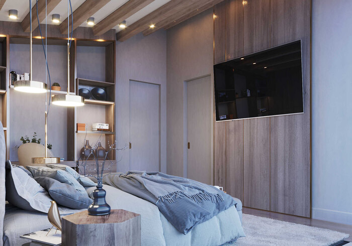 Посмотреть проектДизайн интерьера квартиры для спортивной семьи в стиле джапанди в ЖК "Шведская Крона" - 74 м2