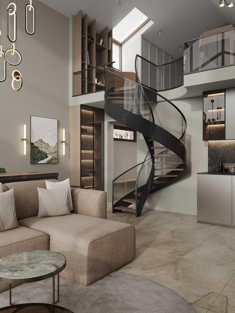 Дизайн проект интерьера загородного дома в современном стиле с элементами хай-тек в Московской области