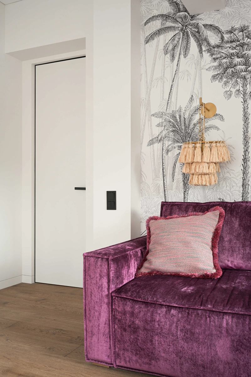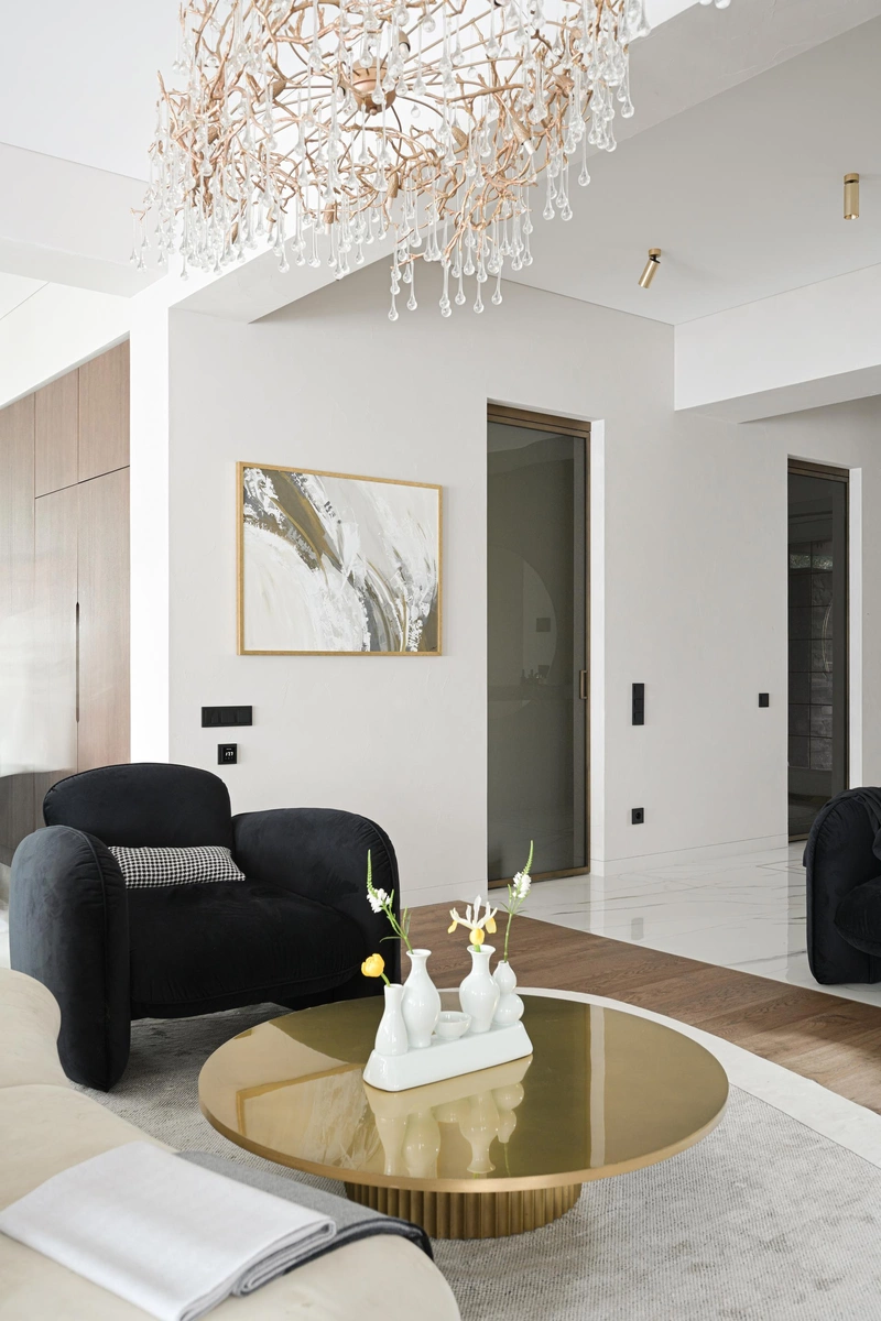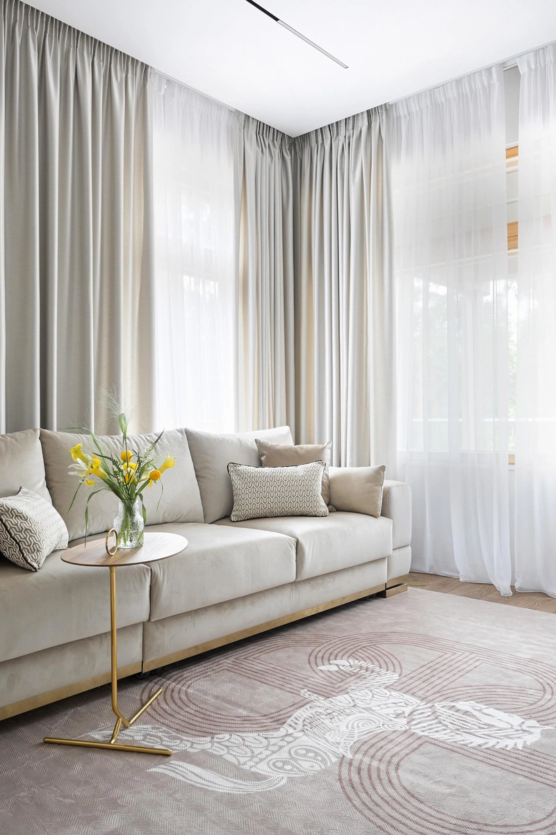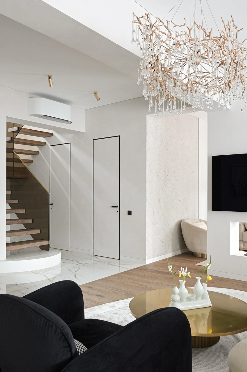 - Высокие потолки и светлая палитра делают пространство воздушным и лёгким.