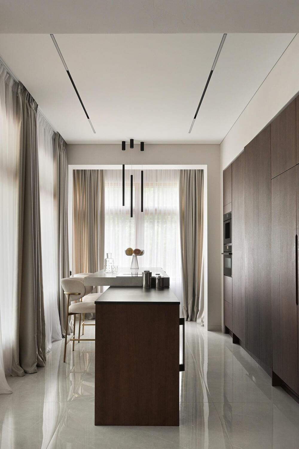 Дизайн выдержан в стиле современной классики, с преобладанием натуральных материалов и благородной цветовой палитры.