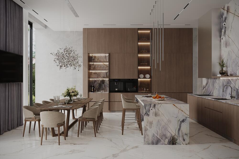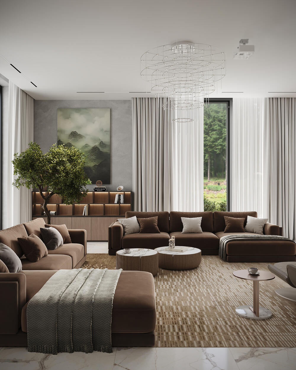 Современный дизайн дома в коричневых оттенках в КП «Петергофские дачи» - 630 м²