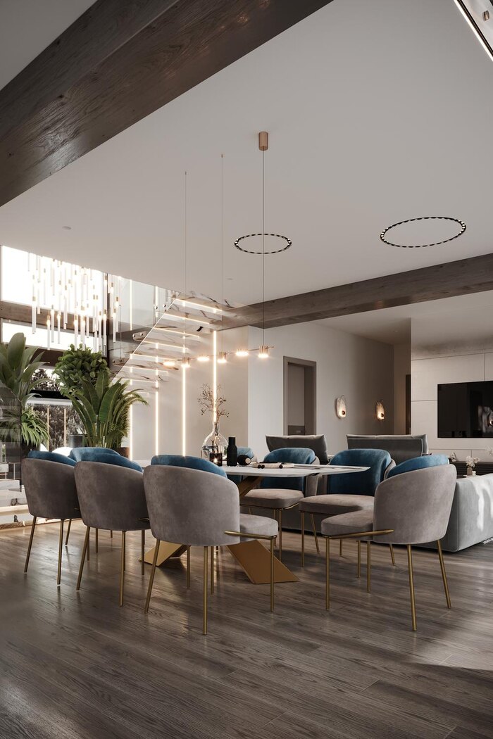 Яркий дизайн загородного дома из бруса в КП «Акватория» - 329 м²
