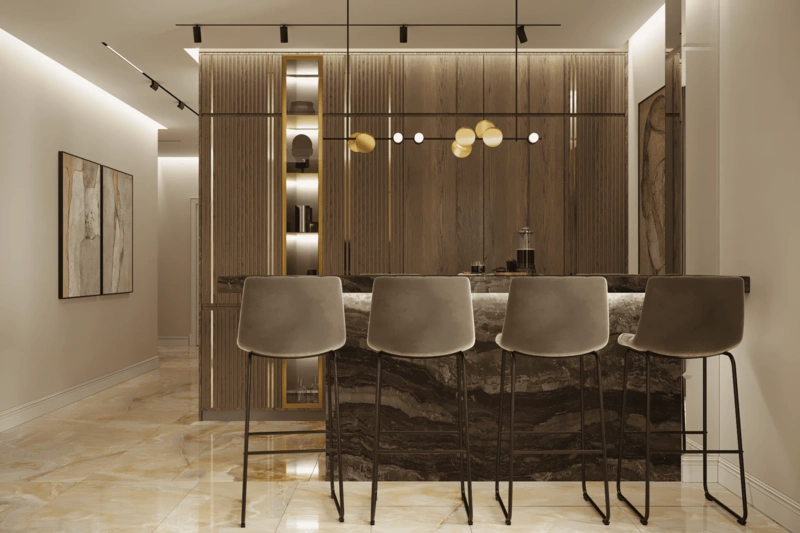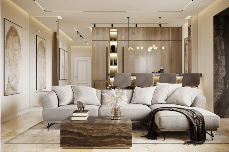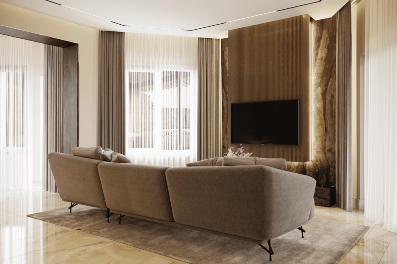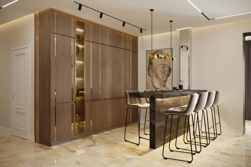 Посмотреть проектДизайн интерьера квартиры в стиле современная классика с элементами дерева 112 м²