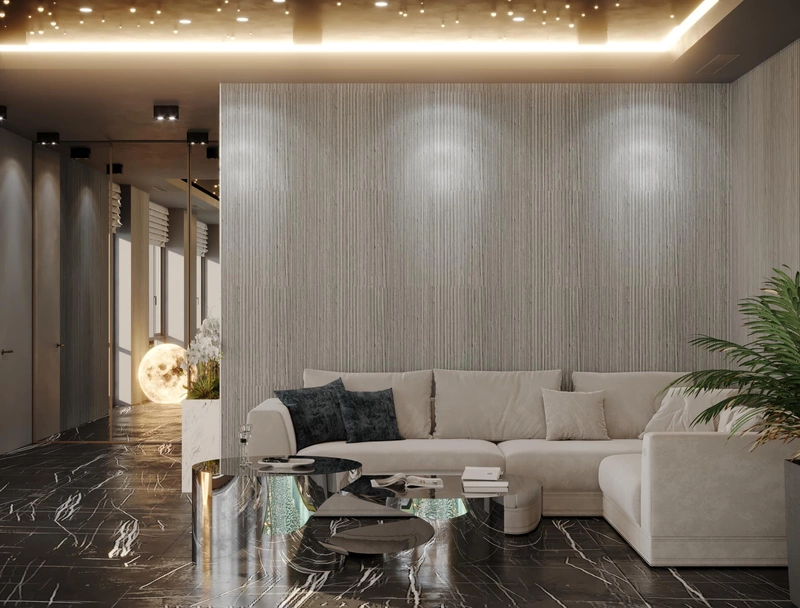 Посмотреть проектДизайн интерьера квартиры в стиле современная классика с элементами дерева в ЖК "Наука" - 112 м2