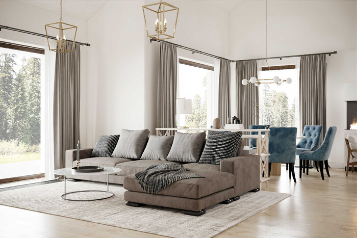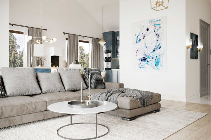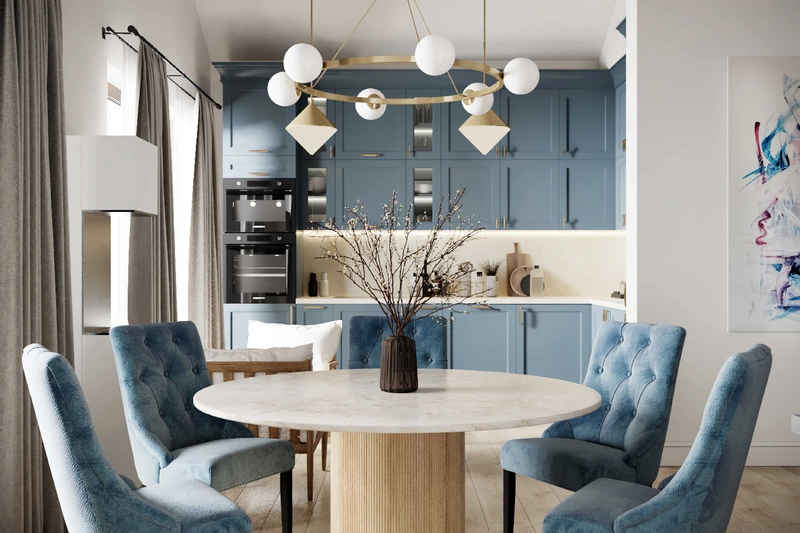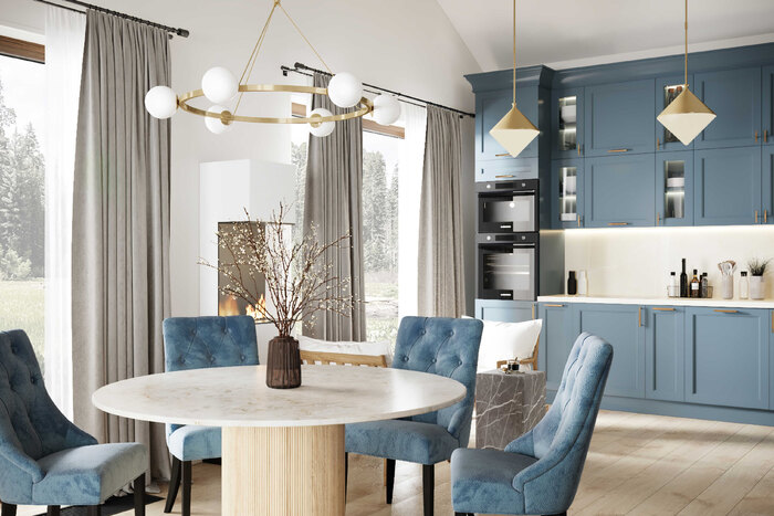 - Совместить кухню с гостиной и сделать большую обеденную зону для приема гостей