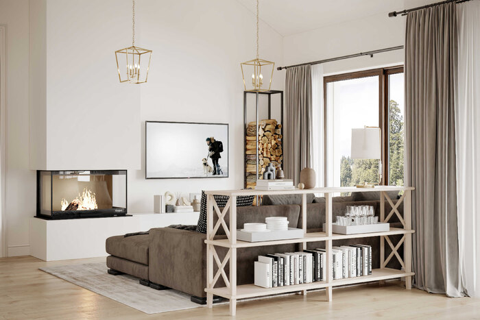 - В гостиной разместить камин