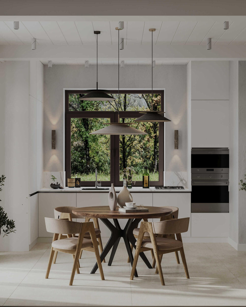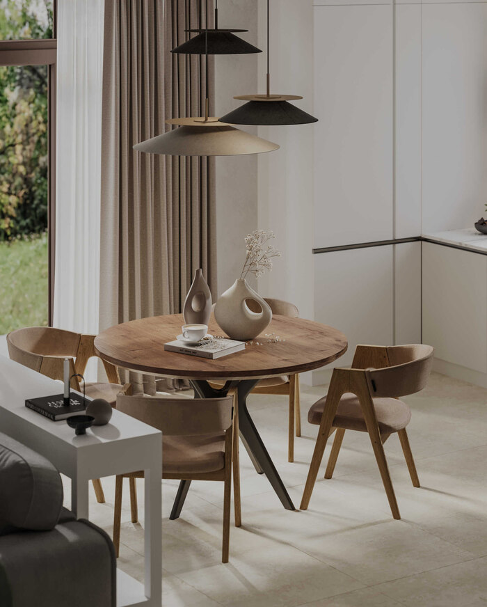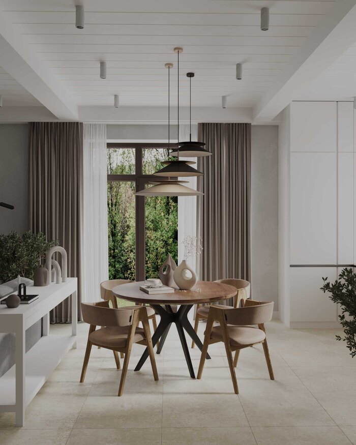 Дизайн-проект таунхауса в КП Охта Парк стал продуманным решением для семьи с двумя детьми и непостоянным проживанием. Мы создали светлое, минималистичное пространство с элементами джапанди, где каждая зона работает на повседневное удобство и логичную организацию жизни.