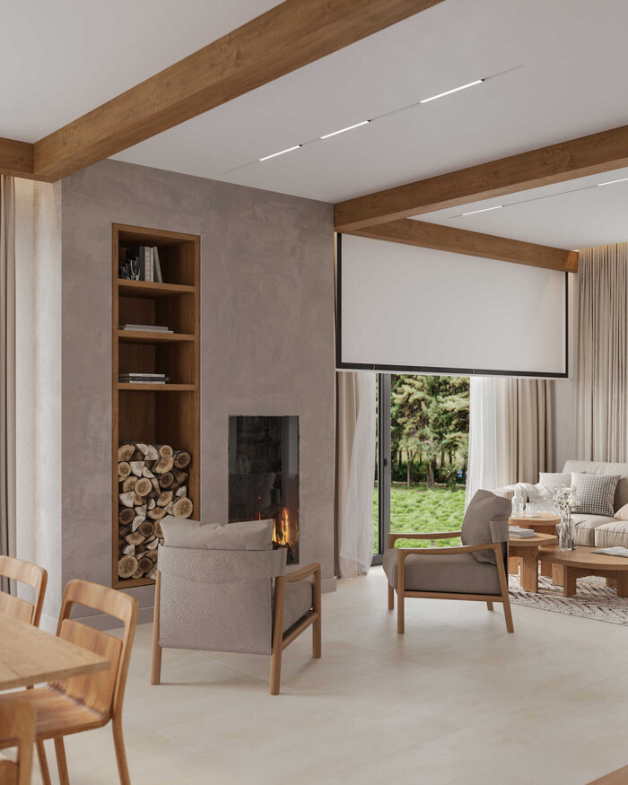 Дизайн интерьера загородного дома в КП «Образ жизни» в стиле минимализм с элементами джапанди - 150 м²