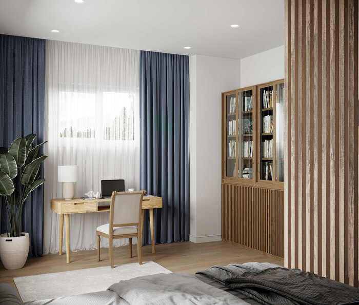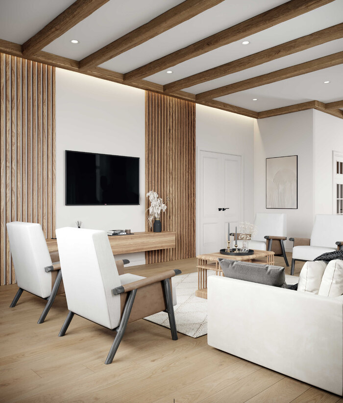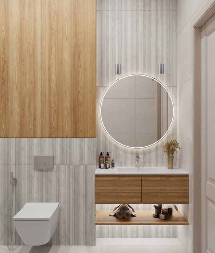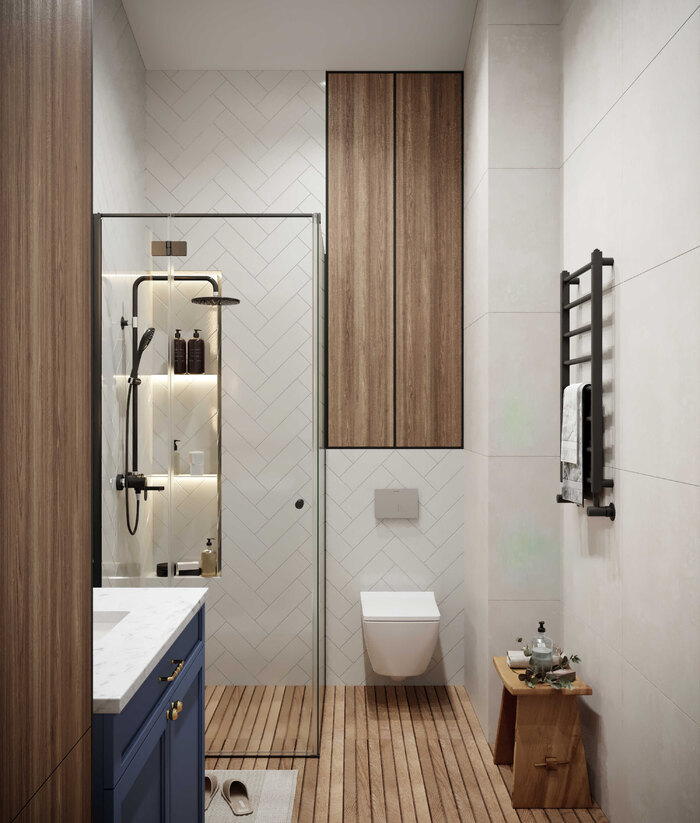 Посмотреть проектДизайн интерьера квартиры для спортивной семьи в стиле джапанди в ЖК "Шведская Крона" - 74 м2