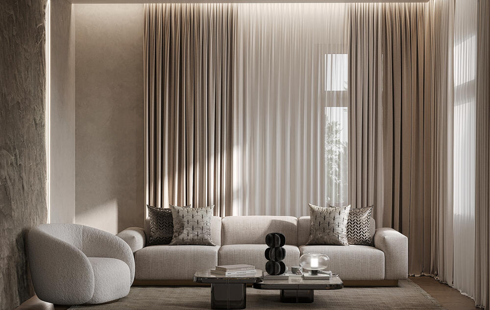 В основе дизайна лежат натуральные материалы, которые подчёркивают премиальность и долговечность интерьера.