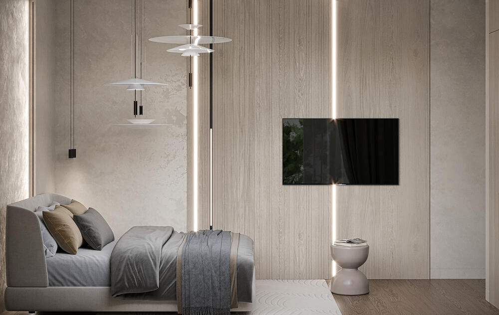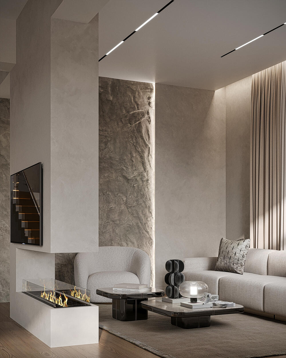 ТВ-зона в этом проекте не просто стена с экраном, а место для расслабления. Мягкая мебель расположена так, чтобы каждый член семьи мог комфортно устроиться перед экраном, а уровень освещения настроен таким образом, чтобы не создавать бликов и зрительного напряжения.