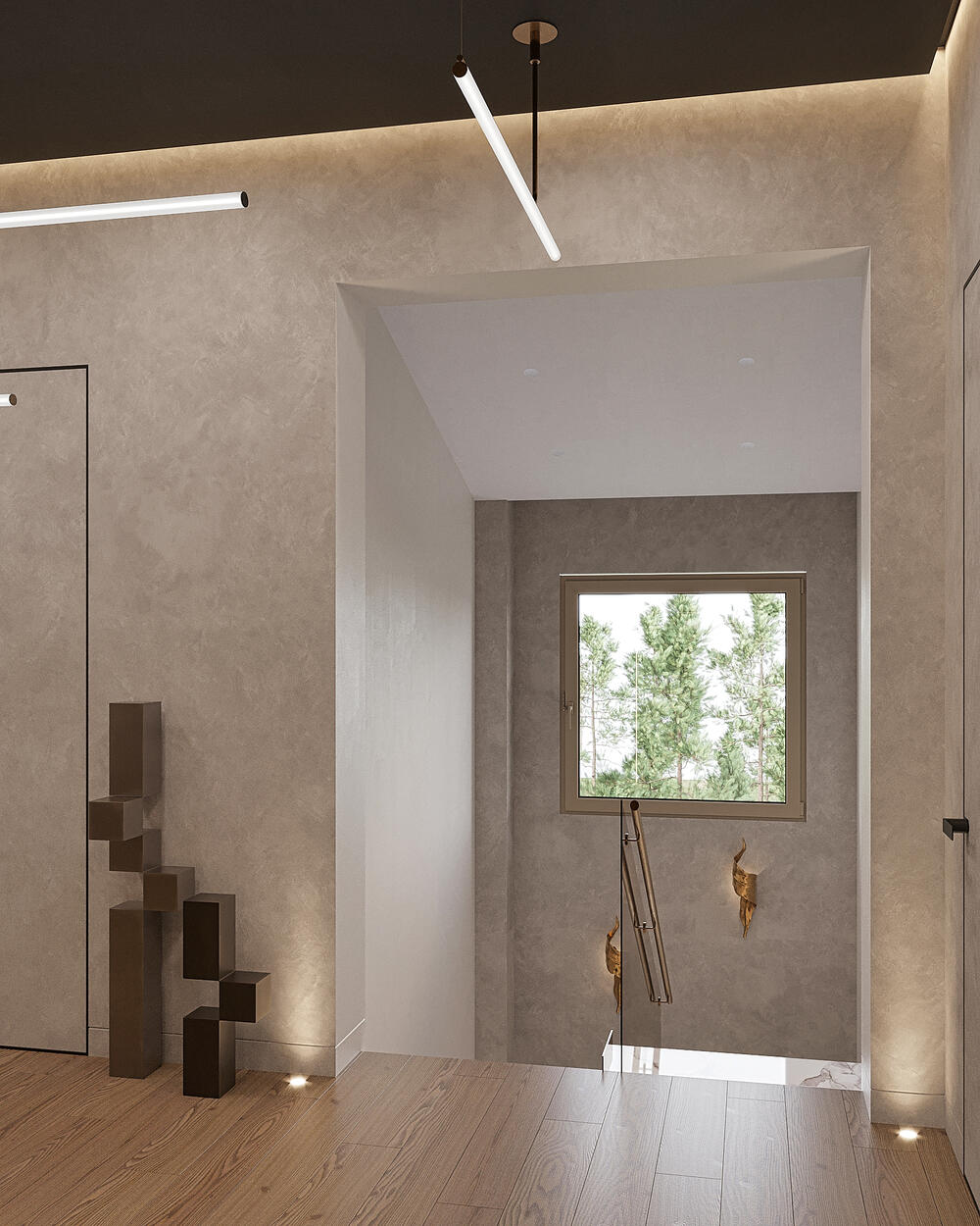 Интерьер загородного дома в КП Honka Family Club стал воплощением элегантной современной классики, где каждая деталь продумана до мелочей. Пространство спроектировано с акцентом на комфорт и функциональность, создавая гармоничное сочетание эстетики и удобства для жизни.