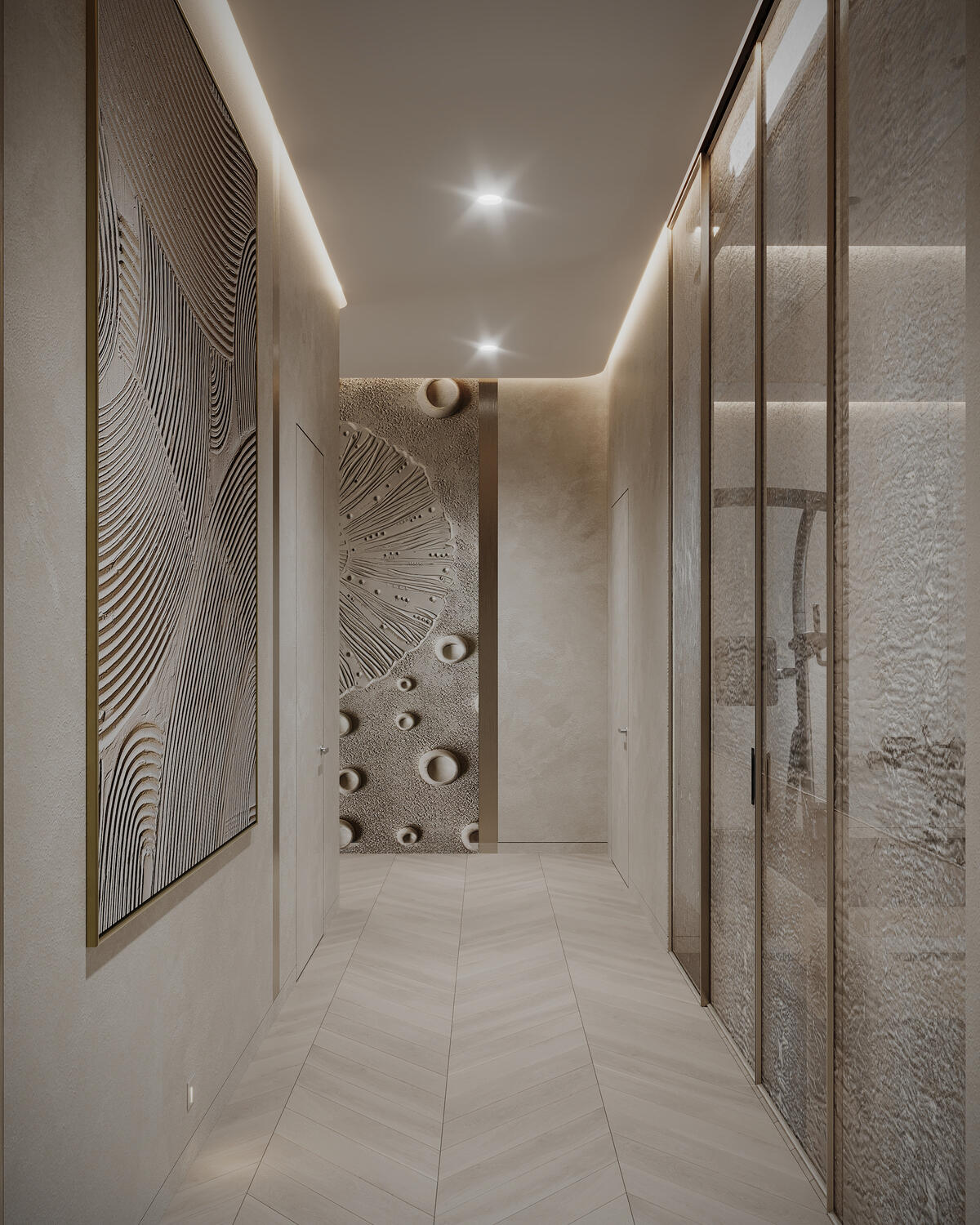 Неординарный дизайн интерьера квартиры с элементами джапанди на ул. Савушкина - 70 м2