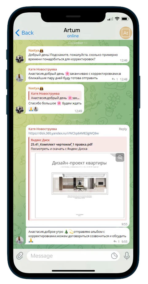 Дизайнер объясняет, показывает, уточняет: любые вопросы решаются быстро, без вашего участия
